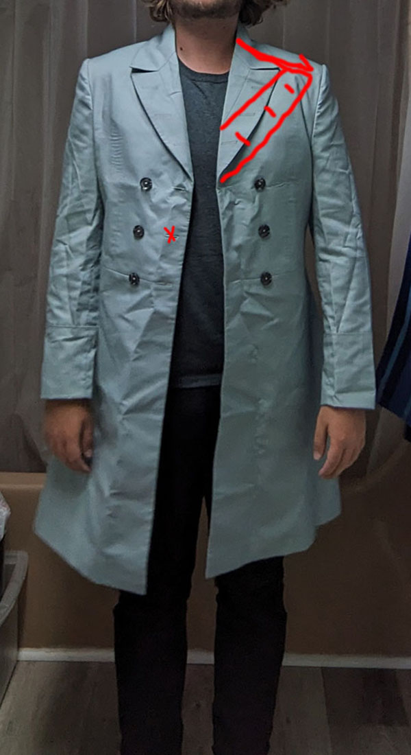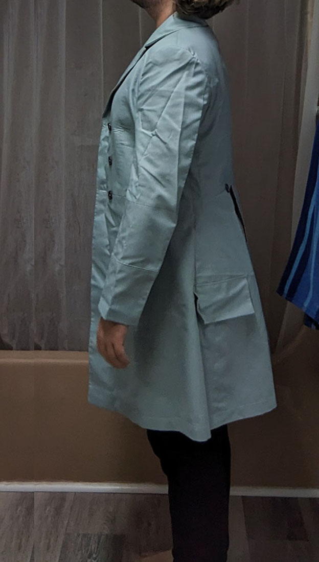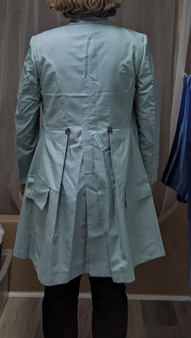 This is a genuinely *incredible* coat. I contacted Baron about doing this as a custom job, and it’s safe to say I’m not disappointed in the slightest! They were incredibly patient as I sent over photos of the original coat and discussed some specific elements, I wanted to be sure were included (such as the large lapels and the two flap pockets on the skirt) and they implemented those marvelously! The coat fits like a dream and is made out of sumptuous light velvet that feels so soft to the touch. The seams in the back give it a wonderful shape, and the skirt flare adds an excellent silhouette. 10/10 purchase, highly recommended!